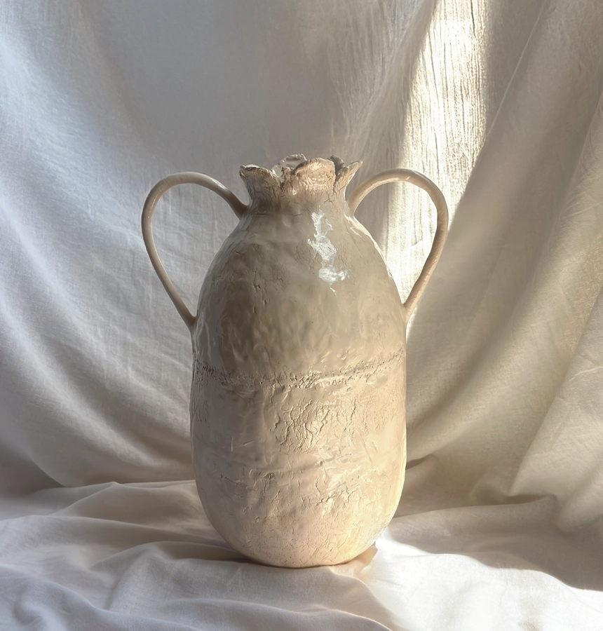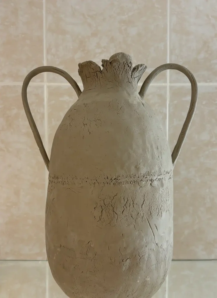 Sanar para Afuera es una serie de jarrones que exploran el diálogo entre la fragilidad y la resistencia. Modelados a mano con la técnica de pellizco, dejan que el barro hable su propio idioma: grietas que aparecen solas, bordes irregulares que se niegan a la perfección. Cada pieza es una metáfora de las cicatrices que nos atraviesan: marcas que no ocultan el dolor, pero que revelan la belleza de haber sobrevivido.