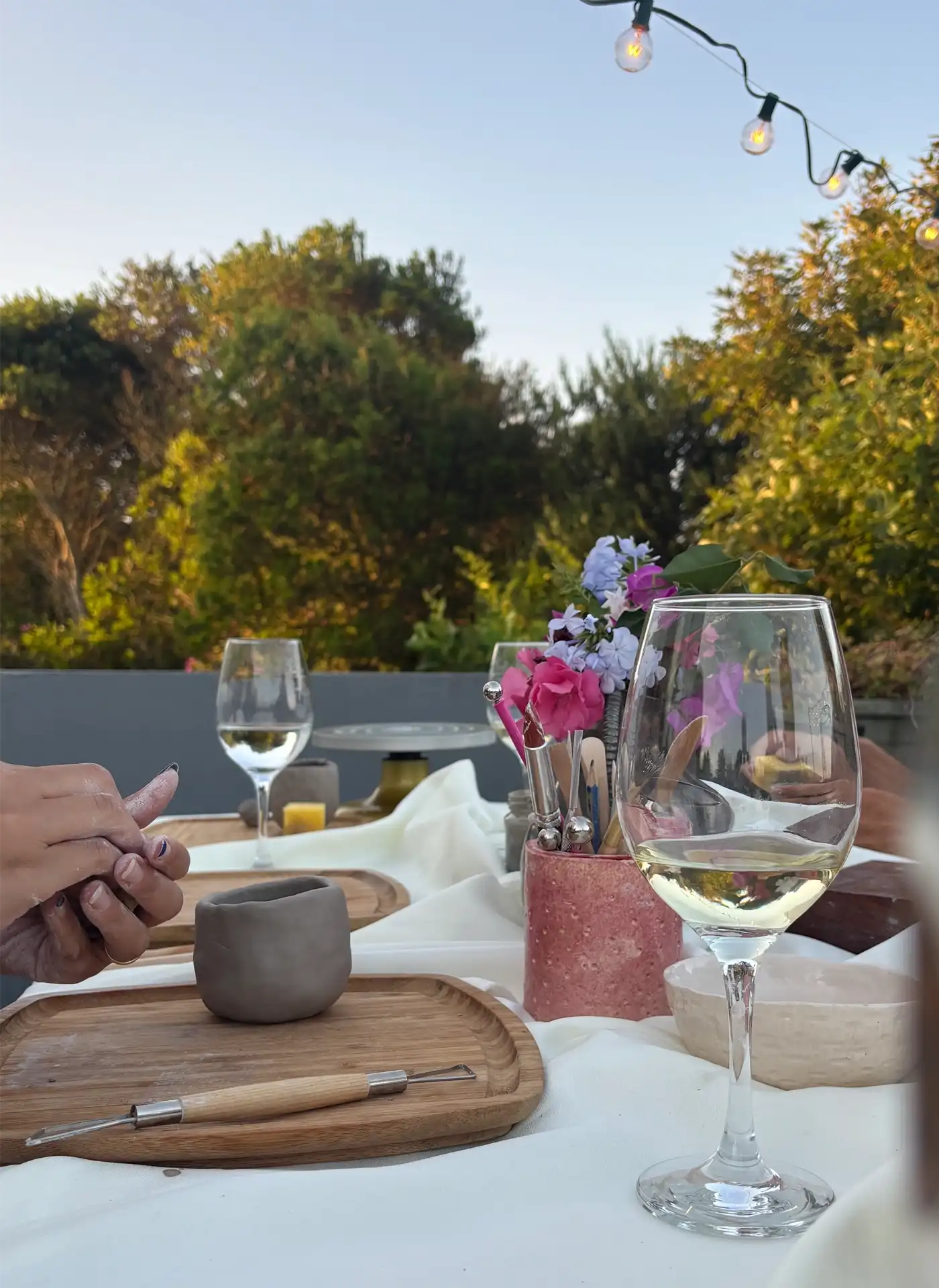 Hay momentos que merecen una expresión singular. Celebraciones íntimas, aniversarios o reuniones especiales encuentran en la cerámica un ritual de pausa y creación. Cada experiencia se diseña de manera personalizada, ya sea en un entorno privado, en un hotel o en un espacio que dialogue con tu visión.